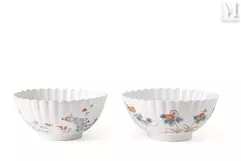 Une paire de coupes en porcelaine et émaux de style Kakiemon, fixée sur un socle de bronze dorée est vendue 25 000 euros ;