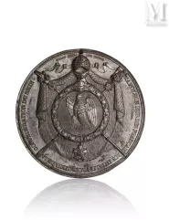 Un lit de camp pliant avec baldaquin, fabriqué par Marie-Jean Desouches. C’est un grand modèle en acier poli et bronze doré. Ses angles formés de quatre montants droits surmontés d'un gland en bronze supportent un dais composé de quatre tringles réunies en partie haute par un cercle. Le meuble d’époque Empire est adjugé 34 000 euros ;