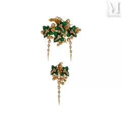 - Une parure constituée de boules de corail comprenant des motifs en micromosaïque et une monture en or jaune, en laiton doré et en argent est cédée au marteau 8 300 euros ;