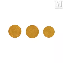 Un pendentif sous la forme d’une pièce Napoléon III présentée dans un cerclage rudenté et crénelé. L’objet est accompagné de sa chaine et il pèse plus de 21 grammes. L’ensemble est cédé au marteau 860 euros ;