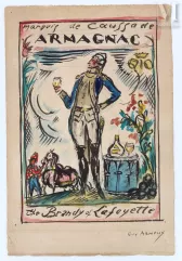 quatre bouteilles d'Armagnac Vieille Eau-de-Vie Garros, avec un panneau de 1877 sont adjugées 950 euros.