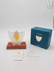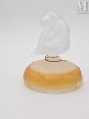 - flacon de parfum par BRINDISIA de FOREST, en verre moulé pressé satiné et patiné figurant une danseuse de flamenco tenant un éventail en façade et d'une cape à motifs floraux au dos. Cette œuvre d'art estimée entre 28 000 et 32 000 euros est adjugée 28 000 euros.