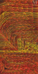 - Une acrylique sur toile de la peintre Lilly Campbell Napangardi, issue du groupe aborigène Warlpiri. Cette œuvre est estimée entre 2 000 euros et 2 500 euros, et adjugée 1 800 euros;