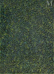 - Une acrylique sur toile de Ningura Napurrula (1938 - 2014), peintre originaire du groupe aborigène Pintupi qui se trouve à Kintore, dans le Désert Occidental. L’œuvre est estimée entre 3 200 euros et 3 500 euros, et adjugée 3 700 euros;