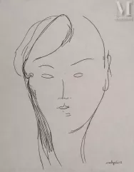 Amedeo MODIGLIANI (1884 - 1920), Portrait de jeune femme, crayon noir sur papier 20,5 x 25 cm, signé en bas à gauche Modigliani / Adjugé 32.000 € chez MILLON