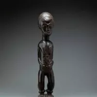 Les Baoulé croient en un dieu créateur Nyamien qui est celui de la terre Asie contrôlant les hommes et les animaux. Leur production de sculptures en bois et masques leur permet d’avoir un contact plus étroit avec le monde de la spiritualité. Ils utilisent beaucoup l’or pour produire des bijoux qui est symbole d’héritage, de pouvoir et d’opulence.
