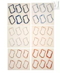 Claude Viallat, né en 1936 à Nîmes, est un peintre français. Il étudie aux Beaux-Arts de Montpellier, puis de Paris jusqu’en 1963. Quelques années plus tard, il commence sa série d’“Empreintes”, marqué par la répétition systématique de formes identiques sur toile, tant au pochoir qu’à l’aquarelle ou encore la gouache. Il est l’un des membres fondateurs du groupe ‘Supports/Surfaces’ en 1969, qui revendique un renouvellement de l’art en gardant des matériaux traditionnels. Il est influencé par Matisse et Picasso, utilisant des couleurs vives et des formes fragmentées. En 1982, une rétrospective lui est dédiée au Centre Pompidou, et en 1988, Viallat représente la France à la Biennale de Venise.