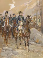 Napoléon et le Maréchal Lannes à Essling, 1809.