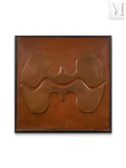 Farid BELKAHIA (1934-2014), Le Baiser, cuivre sur panneau, signé en bas à droite, 35 x 47 cm, adjugé 105 000 euros.