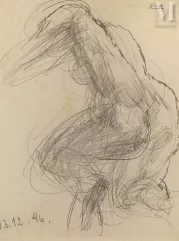 Fikret Moualla, également connu sous le nom de Fikret Saygi, voit le jour à Istanbul en 1903. Son initiation précoce au dessin et à la culture française est largement attribuée à son éducation au sein d'un lycée francophone. Après avoir voyagé à travers l'Europe, notamment en Suisse, en Allemagne et en France, pour poursuivre ses études artistiques, il retourne en Turquie en raison de problèmes de santé mentale et de désaccords financiers avec son père. Bien qu'il soit diagnostiqué comme mentalement sain à son retour en Turquie, il abandonne rapidement son poste de professeur de dessin dans un lycée d’Ayvalı pour se consacrer entièrement à son art. Une série d'hospitalisations prolongées le pousse à émigrer définitivement en France en 1939. Installé à Paris, Moualla lutte contre l'alcoolisme tout en poursuivant sa carrière artistique. Grâce à Dina Vierny, il expose pour la première fois à Paris en 1954 et fréquente les cercles d'artistes renommés. Malgré ses difficultés de santé et ses périodes d'hospitalisation, il trouve un soutien financier chez Fernande Anglès, une collectionneuse. C'est à cette époque qu'il oriente son style vers une peinture plus naïve. Youki Desnos, une figure de Montparnasse, décrit son travail en ces termes : "Moualla crée de vastes étendues de couleur pure, vibrante. Ces surfaces affirmées ont une profondeur et une vivacité qui évitent la banalité. Sa palette audacieuse recrée l'espace et la lumière avec une justesse surprenante, pleine de nuances subtiles. Son dessin rapide et incisif saisit l'essence des personnages avec autorité et tendresse, exprimant avec économie ce qu'il a à dire, sans artifice. Son style généreux crée de l'espace et là où le dessin s'affirme, la couleur de Moualla se déploie en un jeu de nuances délicates." En 1962, Moualla est frappé par la paralysie, mettant fin à sa carrière artistique active. Il passe ses dernières années dans une clinique à Reillanne, où il s'éteint en mai 1967. Portrait de Firkret Moualla, dans son atelier impasse du Rouet