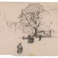Henri-Edmond Cross (né en 1856), pseudonyme d’Henri Edmond Joseph Delacroix, est un peintre et lithographe français. Il est représentatif de la peinture pointilliste et est un proche du mouvement libertaire. Dès son enfance, c’est le cousin de son père qui lui découvre du talent, et devient ainsi son mentor. Il réalise son apprentissage à Lille auprès de Carolus-Duran (1837-1917) et d’Alphonse Colas (1818-1887), puis débute au Salon de 1881 en traduisant son patronyme « Delacroix » en anglais « Cross », afin de se distinguer du grand Eugène Delacroix (1798-1863), sur une idée de son ami le peintre François Bonvin (1817-1887). D’abord naturaliste, il se lie d'amitié avec les peintres néo-impressionnistes, dont il partage les convictions anarchistes. À partir de 1896, il collabore aux « Temps nouveaux » de Jean Grave (1854-1939), en lui offrant des dessins et lithographies, ainsi que des aquarelles pour les tombolas destinées au soutien au journal et à ses publications.