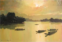 Henri Mège n'a jamais cessé de peindre. Sensible à la beauté de la nature, il a produit de nombreuses œuvres capturant des instants fugaces. Les œuvres présentées aujourd'hui en sont un témoignage poignant : des barques accostant après une sortie de pêche en fin de matinée, une campagne luxuriante en fin d'après-midi. Mège a réussi à saisir ces moments suspendus avec une grande mélancolie.