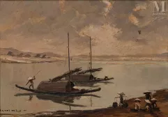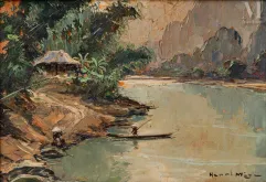Né en 1904 à Romans et fils de la peintre Isabelle Mège (1878-1966), Henri Mège a embrassé la peinture dès son plus jeune âge. Malgré ses talents artistiques, il a choisi de s'engager dans l'armée après ses études et a été envoyé en Indochine en 1931. Durant ses séjours dans la région, Henri Mège a eu l'occasion de rencontrer des personnalités importantes, dont l'empereur Bao Dai, et a établi des liens avec le jeune peintre Mai Thu. Par la suite, Henri Mège a épousé la petite nièce du dernier vice-roi du Tonkin. Son parcours a été marqué par des moments difficiles, notamment une période d'emprisonnement en 1940 pendant l'invasion japonaise. Malgré ces épreuves, il a été nommé professeur à l'École des Beaux-Arts de Saïgon de 1950 à 1956. Henri Mège n'a jamais cessé de peindre. Sensible à la beauté de la nature, il a produit de nombreuses œuvres capturant des instants fugaces. Les œuvres présentées aujourd'hui en sont un témoignage poignant : des barques accostant après une sortie de pêche en fin de matinée, une campagne luxuriante en fin d'après-midi. Mège a réussi à saisir ces moments suspendus avec une grande mélancolie.