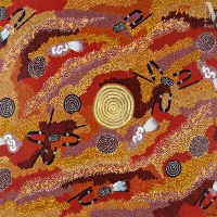 Janet Long Nakamarra est née en 1960 dans le bush, près de la communauté Willowra en Australie centrale. Elle a grandi en vivant un mode de vie traditionnelle avec sa famille. Janet est la fille de l'artiste Nora Long Nakamarra, soeur de Doreen Dickson Nakamarra et demi-soeur de l'artiste bien connu et talentueux Malcolm Maloney Jagamarra. Après avoir quitté l'école, elle a commencé à aider les aînés de la communauté à produire des livres en langue Warlpiri tout en étudiant également en tant que professeur. Ces livres "Warlpiri Women's Voices" ont été traduits en anglais et en warlpiri. Grâce à son travail acharné et à sa détermination, elle a acquis le statut de linguiste auprès de son peuple et a commencé à enseigner à l'école Willowra. Elle a commencé à peindre en 1989 sur de petits formats lorsque le magasin communautaire a commencé à stocker des fournitures d'art pour les artistes qui y résidaient. Mais c’est surtout son frère qui la pousse dans cette voie. En 2003, après une période d’approfondissement des connaissances tribales, les anciens lui ont donné la permission de peindre des histoires sur le thème du Rêve d’Eau (Ngapa). Dans ces peintures, Janet dépeint le débit des eaux souterraines à Warntapari. C'est un lieu où des cérémonies sont effectuées. Ses peintures sont très précises et très riches en détails avec des points très fins. Elle utilise une vue topographique du terrain pour relier les cours d'eau et les déplacements que ses ancêtres ont dû faire pour assurer leur survie et leur accès à l'eau. Parmi les autres sujets des œuvres de Janet, citons Ngapa, Witchetty Grub, Snake, Frog, Women 's Ceremony et Seed Dreamings, Bandicoot Dreaming et Yawulyu (peintures corporelles). Pour les femmes Warlpiri d’Australie centrale lors des cérémonies d’hommage aux ancêtres, les femmes peignent le haut de leur corps, leurs bras et leurs poitrines avec des motifs réalisés avec de l’ocre. Les marques elles-mêmes symbolisent les actions des ancêtres.