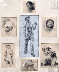 Réunion de 7 dessins sur papier