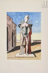 - MAN RAY (1890-1976) Masque antique, 1938. Encre et aquarelle sur papier, 37,5 x 27 cm, à la vue Monogrammé et daté en bas à droite MR 38. Adjugé 15.000 euros.
