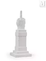 Né en 1960 à Padoue en Italie, Maurizio Cattelan est un artiste contemporain italien connu pour ses mises en scène provocantes. Autodidacte, il débute sa carrière à la fin des années 1980. En 1999, il produit La Nona Ora sculpture en cire représentant le défunt Pape Jean-Paul II frappé par une météorite. En 2011, il expose une main au doigt d’honneur devant la Piazza Affari à Milan et fonde le magazine TOILET avec le photographe Pierpaolo Ferrari. En 2019, l’artiste va disposer une cuvette en or 18 carats au Blenheim Palace en Angleterre. L’objet d’art, intitulé America, est volé le soir de l’exposition. La même année, il produit Comedian, une banane collée à un mur avec du ruban adhésif qu’il présente pour la première fois à l’Art Basel Miami. L’ensemble de son œuvre s’inscrit dans une dynamique de contestation de l’institution artistique.
