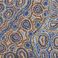Michelle tient ses Rêves de son grand-père et de ses grands-mères. Elle peint souvent des oeuvres en lien avec la thématique du Rêve des 7 Soeurs (ou Rêve de la Voie Lactée) ou encore “Minyma Inmaku” (Cérémonies des femmes) et des histoires associées la région de sa grand-mère autour de Tjukurla, Mimili et Patjar. Elle utilise régulièrement une palette qui tire vers les bleus et les ocres.