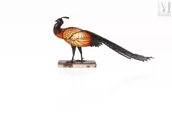 Avec ses rayures d’acier contrastant sur l’orange du verre emprisonné dans cette résille de métal, notre "Tigre" participe du bestiaire de Muller & Chapelle. S’il est absent de la liste connue des pièces commercialisées, tout porte à croire en l’état de nos connaissances qu’il s’agirait d’une pièce unique[2] :