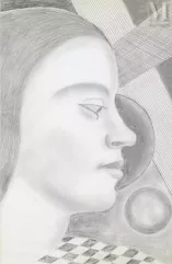 Portrait de Nadia à la sculpture ( recto ) Etude Femme et forme (verso)