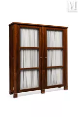 Ce style unique, on le retrouve dans ce bureau dont l’habile jeu de mécanismes est masqué sous des lignes cubistes et des matières luxueuses. Sous l’épure formelle de sa silhouette, il découvre une lampe lorsqu’on soulève sa tablette arrière. Le nécessaire espace d’écriture du meuble, quant à lui, se crée en ouvrant la tablette du dessus qui viendra reposer sur l’appui des caissons latéraux. Plaqués de sycomore contrastant précieusement par sa blondeur avec la teinte du palissandre de Rio, les éléments de rangement sont eux aussi à système. En effet, ils pivotent pour se cacher dans le corps du meuble replié dont l’apparence "fermée" a la discrétion et le faible encombrement d’une console.