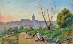 Paul Néri est un peintre né en 1910 ayant vécu longtemps au Maroc. Il s’installe dans la région de Meknès d’où il établit ses voyages dans le reste du pays. La région de Marrakech et les vallées du Haut Atlas sont ses sources d’inspiration principale. Il s’attache alors a documenter les oasis, villes et scènes de vie qu’il rencontre. Si le paysage est son thème de prédilection, il attache aussi une affection particulière aux fantasia.