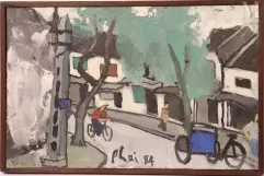Résidant à Hanoï, dont les rues pittoresques du vieux quartier deviendront des motifs récurrents dans ses œuvres, l’artiste, également illustrateur pour diverses revues, retranscrit avec vivacité les moments simples du quotidien. Scènes de rues, acteurs de théâtre, musiciens et passants sont autant de sujets qui permettent à Bui Xuan Phai de transmettre, au travers de la toile, l’âme de sa ville.