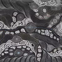 Anna est née vers 1965. Sa famille compte des membres éminents du mouvement artistique aborigène comme Emily Kame Kngwarreye ou sa mère Glory Ngale (décédée). Anna s’est surement appuyée sur ces exemples pour peindre. Car les deux artistes citées plus haut sont célèbres pour la grande liberté dont elles ont fait preuve, puisant parfois dans la tradition la plus orthodoxe et innovant parfois franchement, basculant alors dans la création contemporaine. Anna est ainsi. Elle part de la tradition mais cherche constamment à en donner une lecture personnelle comme c’est le cas dans cette série qui décrit des lacs de sel, la terre craquelée,… Les techniques nombreuses qu’elle utilise autant que le nombre de thèmes vont d’elle l’une des artistes les plus intéressantes de sa génération.