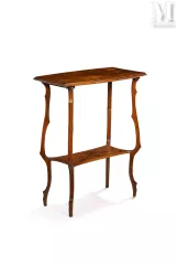 Émile GALLÉ (1846-1904), “Libellules et Nénuphars”. Précieuse étagère en noyer massif et placage de noyer adjugée 28.000 euros.