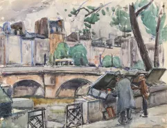 Né en 1896 à Imperia, en Italie, et mort en 1982 à Cagnes-sur-Mer, Jean Villeri est un peintre français d’origine italienne, appartenant au courant non figuratif de la nouvelle Ecole de Paris. Sa famille déménage à Cannes en 1906, et alors qu’il est apprenti chez un tailleur, fait son premier envoi au Salon des Artistes Français, et se dédie ensuite entièrement à la peinture. Il fréquente des artistes tels que Soutine et Bonnard. En 1934, il adhère au mouvement « Abstraction-création » fondé par Herbin, Kandinsky et Mondrian. Jusqu’aux années 1930, ses œuvres sont figuratives, puis s’orientent vers une abstraction plus géométrique. A partir des années 1950, ses peintures, colorées au début de sa carrière, deviennent presque monochromes, et il commence à y rajouter des reliefs métalliques en en bois, ainsi que des cordes.