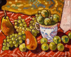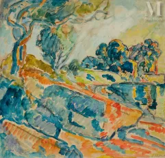 Louis André Valtat, né le 8 août 1869 à Dieppe, est un peintre et graveur français. Issu d’une famille touchée par l’art, son père était un peintre amateur qui exposera au Salon des Indépendants en 1884. Il entre à l’Ecole des Beaux-Arts de Paris en 1886 dans les ateliers de Jules Lefebvre et parallèlement il complète sa formation artistique à l’Académie Julian, sous la direction de Gustave Boulanger puis Benjamin-Constant. Il y rencontre Pierre Bonnard, célèbre peintre avec qui il va se lier d’amitié. Il participera à son premier Salon des Indépendants en 1889 sur les traces de son père. Son travail sera d’abord influencé par le pointillisme avant d’être influencé par le groupe des Nabis et Vuillard qui se situent dans un courant postimpressionniste. Ses premières oeuvres représentent souvent des scènes de foule ou de rue empreinte de la légèreté impressionniste avec les points colorés du pointillisme. Au début des années 1890 il est atteint de la tuberculose et est obligé de se retirer. Il séjourne alors dans plusieurs villes en France et même à l’étranger. Lors de sa convalescence, son style évolue vers plus de clarté et d’éclat. C’est à partir de là que ses tendances fauves émergent : les couleurs se font plus franches et on ressent une plus grande expression. Il n’entre néanmoins pas pleinement dans le mouvement puisque les formes et couleurs qu’il applique ne se font jamais aussi entreprenantes que les Fauves, il assert d’un cerne noir les courbes qu’il trace, délimitant l’espace et les figures. Vers la fin du XIXème siècle, il réside à Agay et Anthéor, deux petits hameaux de pêcheurs proche de Saint Raphaël. Ces paysages maritimes inspireront plusieurs de ses oeuvres où on retrouve des pêcheurs penchés sur leur travail ou encore des vues du port. Si Louis Valtat n’est pas considéré comme un artiste du fauvisme à part entière, il exposera néanmoins avec ceux ci au Salon d’Automne de 1905 aux côtés d’artistes tels que Manguin, Matisse, Derain et Puy. Un des tournants dans la carrière de l’artiste se fera dans le courant de la décennie 1920 lorsqu’il fera l’acquisition d’une petit propriété à Choisel, petit village où il réside principalement l’été. Son jardin luxuriant rempli de fleurs et de fruits qu’il cultive lui même seront alors une source sans fin d’inspiration pour lui. Il réalise une multitude d’oeuvres sur cette thématique, faisant exploser sa palette chromatique dans des tons chatoyants et lumineux, illustrant les journées d’été qu’il passe dans sa maison.