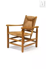 The straw chairs and the n°19 "Bauche" chairs can be estimated at a few hundred euros. Forexample,a pair of "Bauche" chairs sold for €1,800 at our auction house.A series of seven chairs and a stool, circa 1960, with an oak frame and straw seats and back, sold for €4,000 at MILLON .