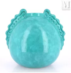 - Paul JEANNENEY (1861 - 1920) en PRUD'HOMME, steengoed sculpturale vaas uit 1904, geveild 18.000 euro in 2021 in Parijs.