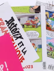Een Asterix-strip vertelt de avonturen van de onherleidbare Galliër en zijn onafscheidelijke kameraden Obelix, Panoramix en Idéfix. Nadat de eerste 6.000 exemplaren waren gedrukt in 1961, verschenen er 38 albums. Goscinny en Uderzo werkten samen aan de eerste 24 avonturen van Asterix. Na de dood van zijn bevriende scenarist in 1977 werkte Uderzo alleen aan de 25e tot 30e albums. Sinds album 35 hebben andere getalenteerde tekenaars de rest van de avonturen van Asterix tot leven gebracht.