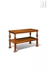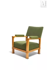 Cet enthousiasme autour de l’œuvre d’Arbus se concrétise à la fin des Années 1930 et durant les années 1940 par de nombreuses commandes privées et publiques, notamment du Mobilier National. L’artiste y déploiera un style monumental et architectural, qui s’annonce dès l’Exposition Universelle de New York en 1939 dans un meuble d’appui en sycomore verni et laque d’or. Cette manière de formes simplifiées et allongées inspirées des styles classiques qu’agrémentent de riches ornementations de bronze ou d’ivoire sera désormais sa marque de fabrique. Arbus aura également un goût marqué pour les matériaux précieux et vecteurs d’effets de matière comme la laque, la feuille d'or ou le parchemin.