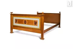 Ce fermoir de bronze à la présence résolument baroque se retrouve sur notre commode qui, elle, est plaquée d’acajou sur la blondeur duquel contrastes quelques moulures dorées. Si l’effet diffère du meuble de 1936, on y retrouve ce même rapport d’Arbus aux lignes et aux calibres des ornements du mobilier Louis XVI et du Consulat comme source d’inspiration. Et à cette inspiration, l’ébéniste-décorateur superpose sa vision personnelle, réalisant ainsi l’exigence Baudelairienne[2] de "dégager de la mode ce qu'elle peut contenir de poétique dans l'historique, de tirer l'éternel du transitoire."