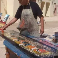 Abderrahmane Zenati est un écrivain, poète et peintre marocain. Il né Oujda en 1943 dans un milieu défavorisé, il subit une enfance difficile. Il su toutefois se rattacher aux contes que narrait le vieux conteur populaire Tayeb dans la halka, mais frôle la mort à ses douze ans. Dès ce moment, il s'initie aux arts et à l'écriture. Ses toiles témoignent de sa survie ; elles illustrent des visions d’un Maroc à l'atmosphère pesante, avec une appréhension du drame évidente, mais étincelantes de lueurs d'espoir. Abderrahmane Zenati peint et écrit à Oujda et sur Oujda depuis 45 ans.