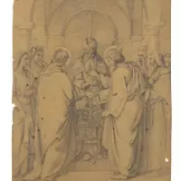 Artiste aujourd’hui peu documenté, nos différents dessins retracent l’important travail préparatoire d’Edouard Krug concernant ses multiples projets de fresques ou peintures. Ils témoignent d’un artiste qui a parfaitement su lier envois au Salon et commandes religieuses.