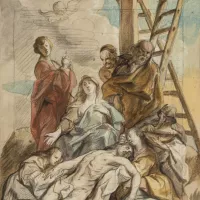 On associe fréquemment le nom de Jacob Jordaens à ceux de Pierre Paul Rubens et d’Anton van Dyck, soit les trois maîtres de l’école de peinture anversoise au XVIIème siècle. Jacob Jordaens est né à Anvers en 1593. Il fait ses débuts dans la guilde de Saint-Luc en tant qu’élève du peintre Adam van Noordt. Mais ce sont plutôt les apports de la peinture du Caravage, d’Abraham Janssens et de Rubens que l’on retrouve dans ses premières oeuvres. C’est grâce à ces diverses influences que Jordaens parvient progressivement à réchauffer son coloris, enrichir sa palette et libérer sa touche. La seconde partie de la carrière de Jordaens est marquée par le « style héroïque ». Celui-ci se définit par la puissance de la composition où l’on distingue des formes colossales vues par en dessous, une lumière intense et pure qui découpe les volumes ainsi qu’une plénitude des formes. Cela se perçoit particulièrement bien dans Les Quatre évangélistes exposé au Louvre. Si une certaine concurrence naît entre Jordaens et Rubens, cela ne les empêchent pas de travailler sur des projets communs, comme ce fut le cas entre 1634 et 1635 concernant les décorations pour l’entrée solennelle du Cardinal-Infant Ferdinand dans la ville d’Anvers ou encore entre 1637 et 1638 pour un ensemble de tableaux destinés à la Tour de la Parada, en Espagne. Après la mort de Rubens en 1640, Jordaens devient l’artiste anversois le plus en vue. Il reçoit une succession de commandes, allant de la Reine d’Angleterre qui lui commande une succession de 22 tableaux racontant l’Histoire de Psyché pour son Palais à Greenwich, jusqu’à la Reine de Suède qui lui demande un ensemble de 36 tableaux pour décorer le château d’Uppsala. Dans les années 1650, Jordaens exécute des oeuvres pour le gouvernement des Provinces-Unies, comme l’atteste sa participation au décor pictural de la salle d'Orange à la Huis ten Boch de La Haye, tout en peignant des sujets religieux pour les Églises catholiques d’Anvers. À la fin de sa vie, Jordaens participe ouvertement au culte protestant, tout en continuant à recevoir des commandes de la part de l’Église catholique. Il finira par mourir en 1678 dans sa ville natale, à Anvers.