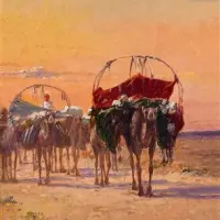 Né à Soissons, Delahogue travaille avec son frère jumeau, Eugène, aussi peintre. On le définira comme peintre de paysage et peintre orientaliste. En effet, Alexis et Eugène Delahogue ont parcouru tout le Maghreb, avec une attirance plus certaine pour l’Algérie : d’Alger à Constantine, et d’El Kantara à Biskra. Ils exposent ensemble leurs toiles de petites tailles mais ne choisissent pas les mêmes thèmes à exploiter. Si Eugène peint les souks, les campements dans les oasis, Alexis Auguste traite les dromadaires et les personnages statiques. En général, ils mettent sur toile les particularités du pays : les caravanes du désert, la lumière saharienne, les oasis, les habitants… Ses tableaux sont lumineux, comme si il essayait de fuir la noirceur des grandes métropoles. Les frères deviennent membres de la Société des Peintres Orientalistes et de la Société des Artistes Algériens et Orientalistes. Alexis Auguste Delahogue expose plusieurs fois au Salon des Artistes Français et en 1889, il en deviendra le sociétaire.