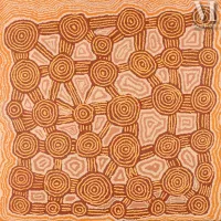 Billy Nolan (vers 1939 – 2003) a vécu de façon traditionnelle dans sa jeunesse, incorporant des connaissances dont il conservera le souvenir toute sa vie. Né du côté de Docker River, il fait partie des premiers Pintupi à prendre contact avec la civilisation occidentale. Il est à Papunya dans les années 1970 quand commence le mouvement pictural. Après quelques d’années d’observation il se met à peindre en mars 1976. Ayant trois femmes, il a des relations familiales avec la plupart des artistes importants de son groupe. Sa peinture est souvent marquée, sauf à la fin de sa vie, par une texture riche, la peinture étant peu diluée et déposée en couches épaisses. Il décrit le plus souvent des cycles Tingari associés à ses terres, notamment le site de Pirrmalnga. Collections : HaC, NGV, NMA,…