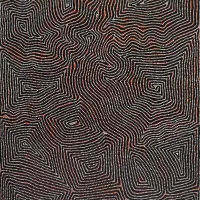 Charlie Tjapangati est connu pour son travail très méticuleux et ses effets optiques. Il peint les Rêves Tingari, caractéristiques de la peinture masculine pintupi : des motifs linéaires qui rappellent le paysage de longues dunes rectilignes du désert. Sa famille fut l’un des groupes nomades récupérés dans les années 1960 par les patrouilles de la Native Welfare dans le cadre de la politique dite d’assimilation. Charlie fait partie d’une grande famille d’artistes, on notera notamment que son père était le regretté Pinta Pinta Tjapanangka. Né vers 1949, il a pris contact avec la civilisation occidentale en 1964. Résident à Kintore, il peint depuis 1978 et il est aujourd’hui l’un des peintres les plus importants de la communauté. La coopérative le soutient en incluant ses œuvres dans d’importantes expositions. En 1981, Charlie accompagnera Billy Stockman Tjapaltjarri et le responsable de la coopérative artistique pour une exposition « Mr Sandman Brings Me a Dream » (collection Holmes a Court) aux USA. En 2000, il fait partie des initiés qui se déplacent à l’Art Gallery of New South Wales de Sydney pour l’exécution d’une peinture au sol traditionnelle.
