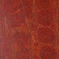 George Ward n’étant plus tout jeune, il a dû se résigner à gagner la ville où la vie est plus simple, la possibilité de se soigner facile. Pourtant pendant longtemps George Ward s’y est refuse. « Je suis un homme du Bush, Moi » répond –t-il à une interview avec fierté il y a quelques années. Il est né sans doute au tout début des années 1940. Son père meurt lorsqu’il est jeune. Il rencontre pour la première fois des hommes blancs alors qu’il est encore adolescent et qu’il campe avec sa famille près d’un point d’eau. Il s’agit des membres d’une « commonwealth Welfare Patrol ». Ils seront amenés jusque Papunya, là où va apparaître le mouvement pictural. Il occupe plusieurs postes dans la cuisine communautaire, comme pour de nombreux hommes, cela faisant partie de la politique d’assimilation. En général, ceux qui refusaient ces postes ne pouvaient pas manger à la cantine. Après son mariage avec Nangawarra, issue d’une des familles importantes du désert, et la naissance de leur premier enfant, ils se déplacent vers Warburton, Docker River, Warakurna et enfin Kintore où ils finissent par s’installer. Devenu un homme de loi important et suivant l’exemple de ses frères, George se met à peindre. Pour la conservatrice de la National Gallery of Victoria, sous le charme de sa peinture à la fois puissante et délicate, George a attendu pour se lancer dans la peinture de maîtriser les connaissances, d’en avoir une idée synthétique pourrait-on dire. La terre, les sites sacrés et toutes les histoires qui y sont associées sont représentés à l’aide de quelques lignes formant comme un labyrinthe. On y voit rien, juste ces lignes mais elles décrivent des histoires complexes mettant en scène les Ancêtres et comment ils insufflèrent la vie dans cette région, l’une des plus isolée du monde, et surtout le déplacement et les actions des Ancêtres Tingari. Une fois déposé les points, généralement blancs, la toile, illuminée, prend toute sa force. Les œuvres de George Ward Tungurrayi figurent dans d’importantes collections privées et publiques.