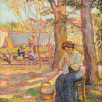Dans la catégorie dessin et aquarelle, l'œuvre la plus chère vendue à ce jour est l’encre sur papier intitulée “Femme de l'artiste et ses enfants dans le verger”. Le pastel sur papier a été adjugé 21 000 €.