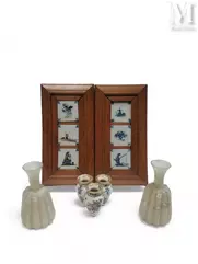 - Een gerestaureerd rechthoekig bord van Delfts aardewerk met blauwe cameeversiering met als thema het lijden van Christus, gemaakt in de 18e eeuw. Dit stuk, geschat op €600 tot €800, werd in 2020 verkocht voor €1.650;