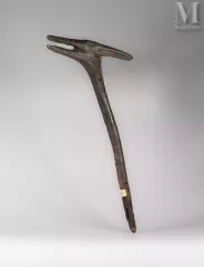 Een Yo-domolo stok met een gestileerd paardenhoofd aan de bovenkant. Het hardhouten object meet 65 x 29,5 cm en dateert uit de late 19e of vroege 20e eeuw. De stok werd verkocht voor €1.950.