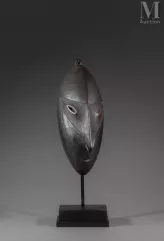 Een dansmasker met een kubistisch gezicht, bekroond door een kuif met drie uitwassen die waarschijnlijk doen denken aan gestileerde toegangspijlers voor heiligdommen. Dit houten object, met zijn originele polychrome decoratie met natuurlijke pigmenten, koorden, bijenwas en verschillende materialen, dateert uit het begin van de 20e eeuw. Het masker is 89 x 49 cm groot en werd in 2019 verkocht voor €3.300.