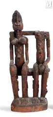 - Een bronzen rituele tork versierd met twee voorouders. Het object dateert uit de archaïsche Dogon periode, uit de 15e tot 16e eeuw. Het wordt verkocht voor €1.500,