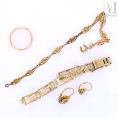- de Tank armband in 18-karaats geelgoud heeft een chenille schakel met kralen. Met een gespsluiting biedt dit sieraad een veilige sluiting. Het weegt 44,6 gram en wordt geschat op tussen de €1.500 en €1.850 ondanks enkele tekenen van slijtage. Het werd verkocht voor €1.850;