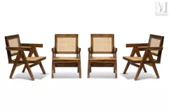 Pierre JEANNERET (1896 - 1967), een suite van vier fauteuilconstructies "Easy Armchair" in teak, verkocht voor 10.000 euro bij MILLON.